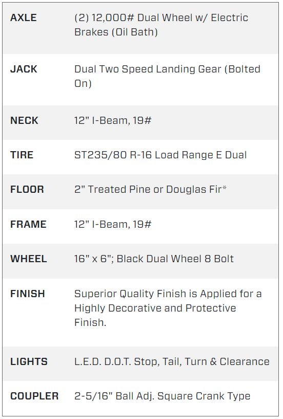 Coupler Type: 2-5/16” adjustable gooseneck coupler