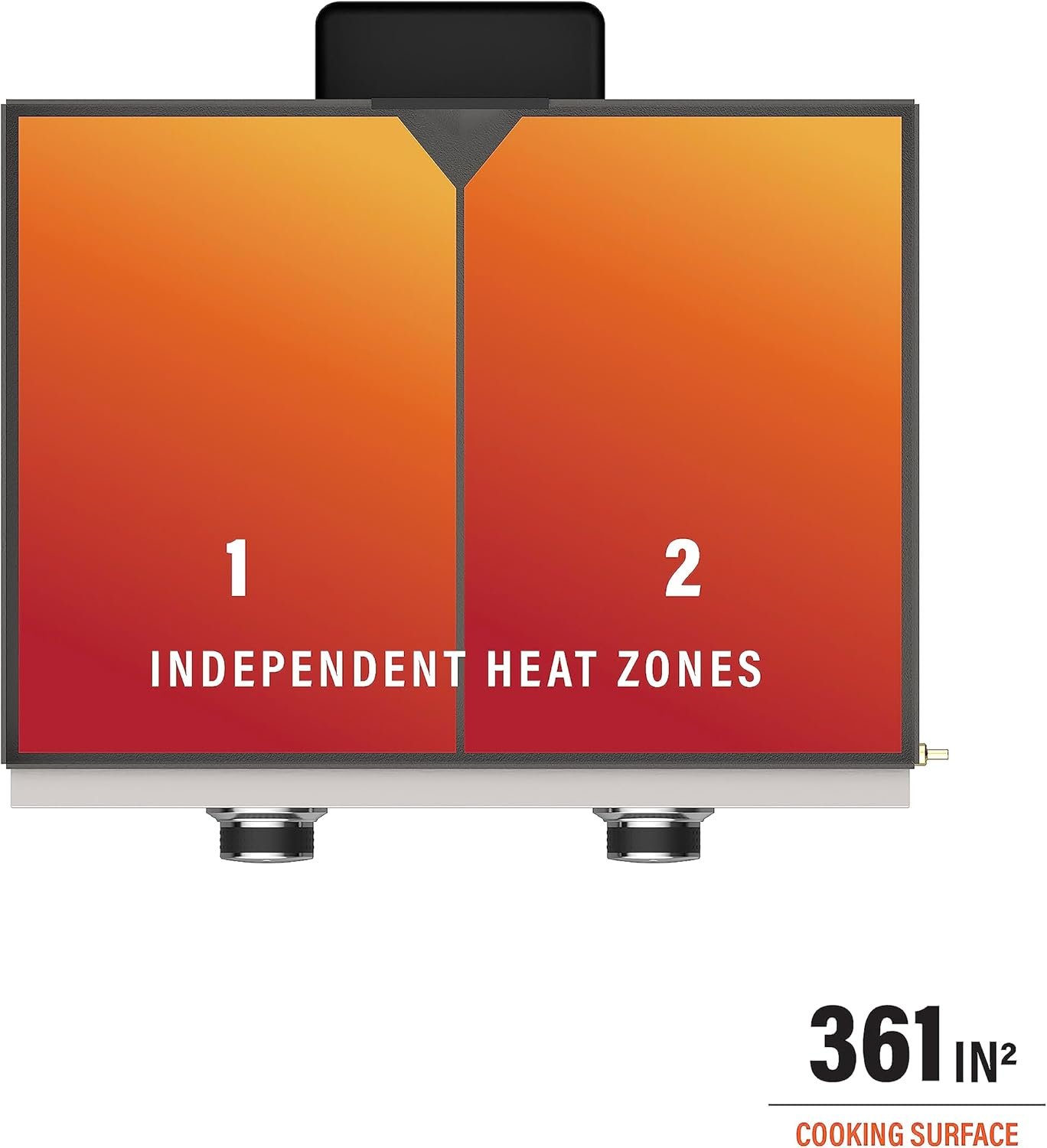 • Dual H-Shaped Burners – Two independently controlled burners deliver a powerful 24,000 BTUs for fast, even heating across the entire griddle surface. Cook different foods at different temperatures with ease.