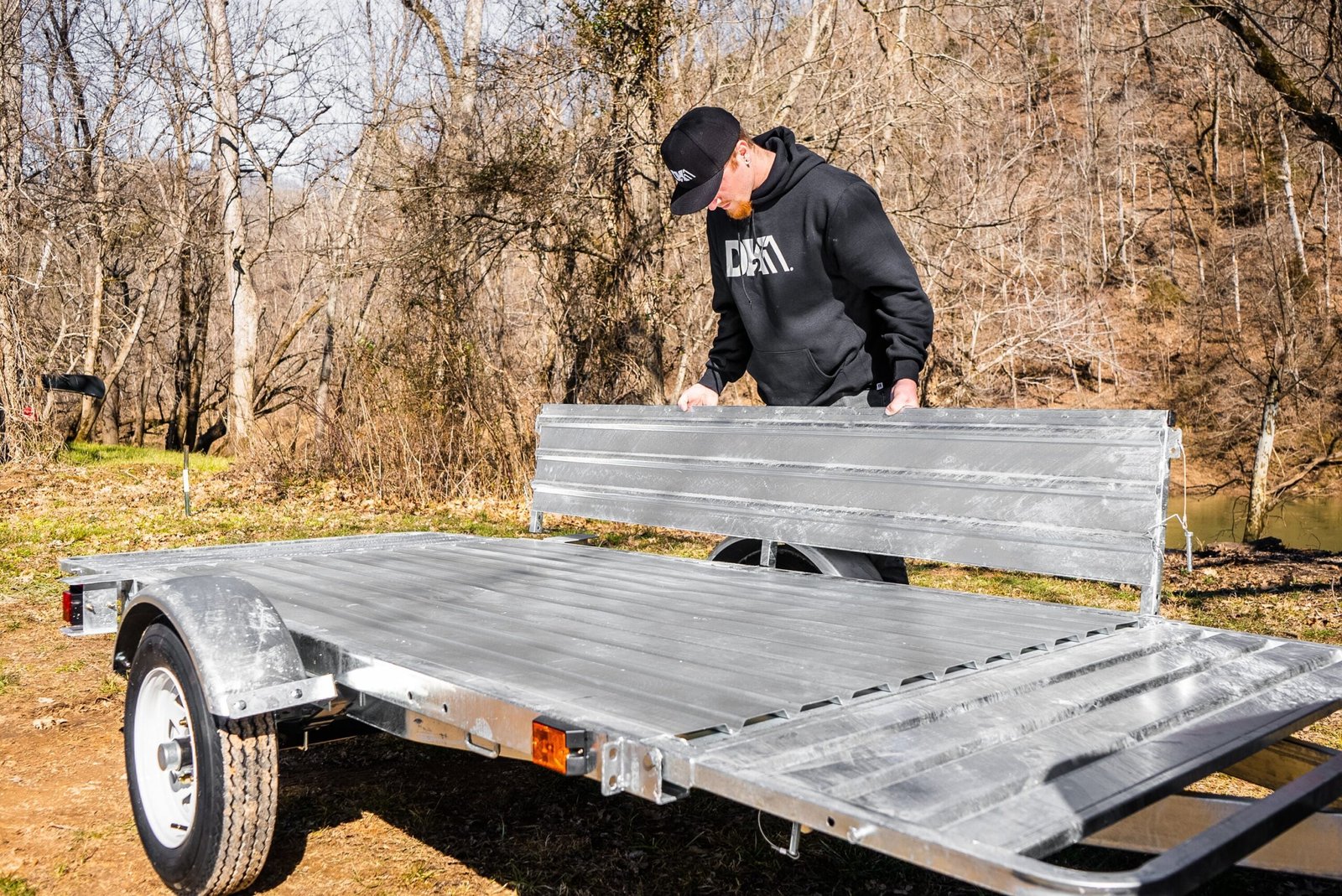 24 inch load-bearing corrugated steel drop gates that- when lowered- extends the trailer bed to 11 point 3 ft