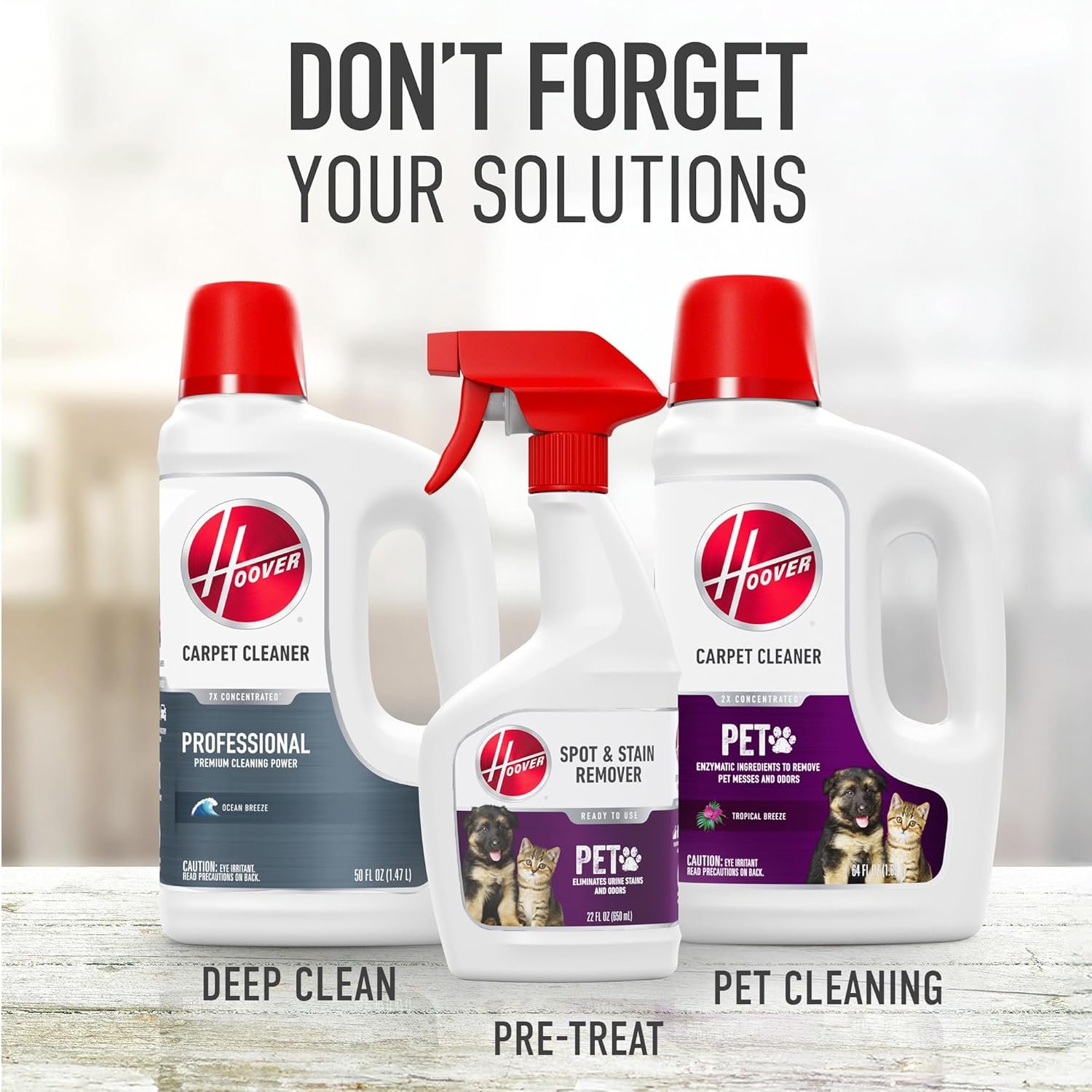 - PAIR WITH HOOVER CLEANING SOLUTION: For a bright, refreshed home, use the SmartWash+ with a Hoover carpet shampoo solution. Tackle pet messes with our Pet formula or clean everyday stains with our Everyday solutions.