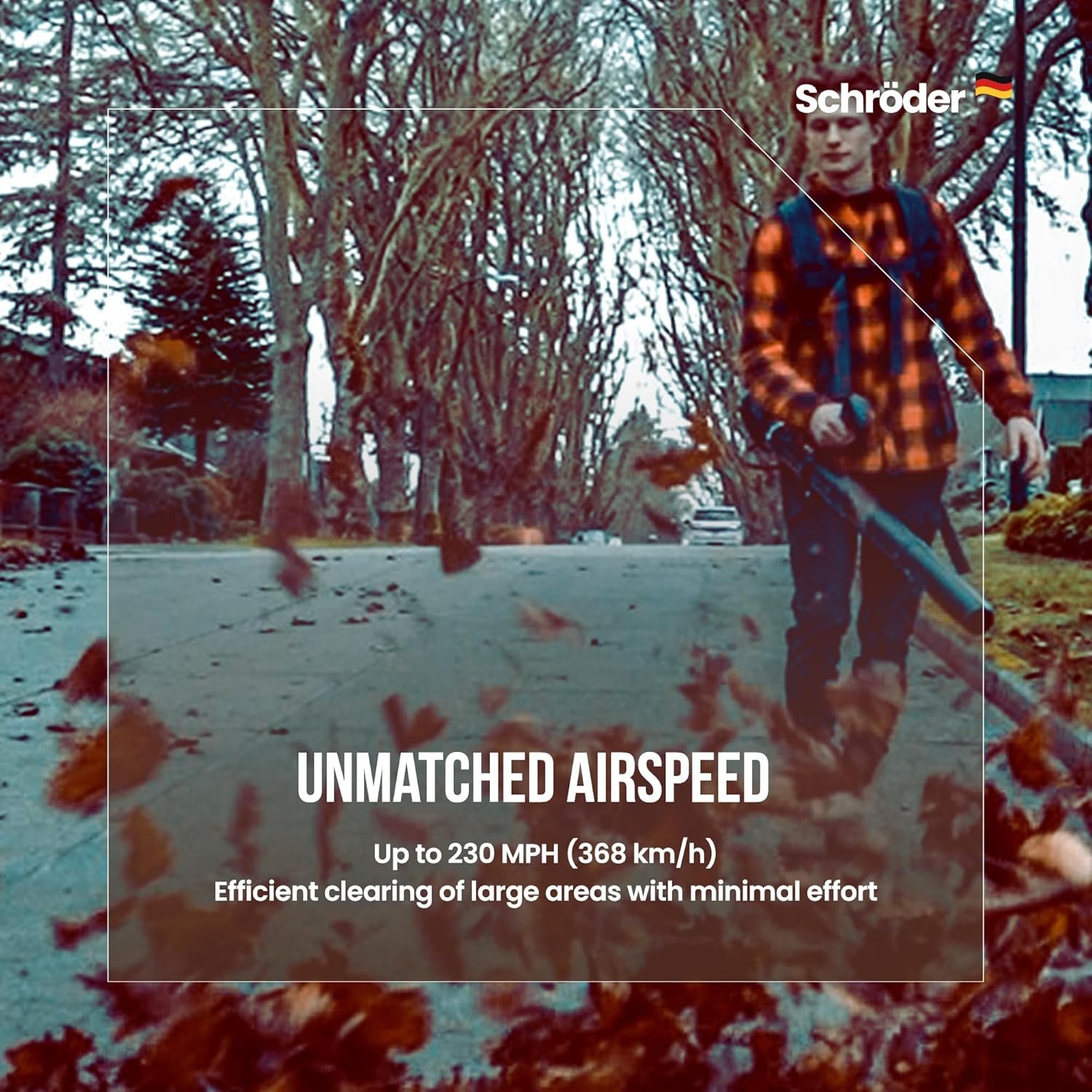 • Powerful Performance: Featuring a 63.3 cc, 2-stroke 3.7 HP engine, the Schröder SR-6400L delivers up to 230 MPH airspeed and 920 CFM air volume, making it ideal for tackling wet and dry debris effortlessly.