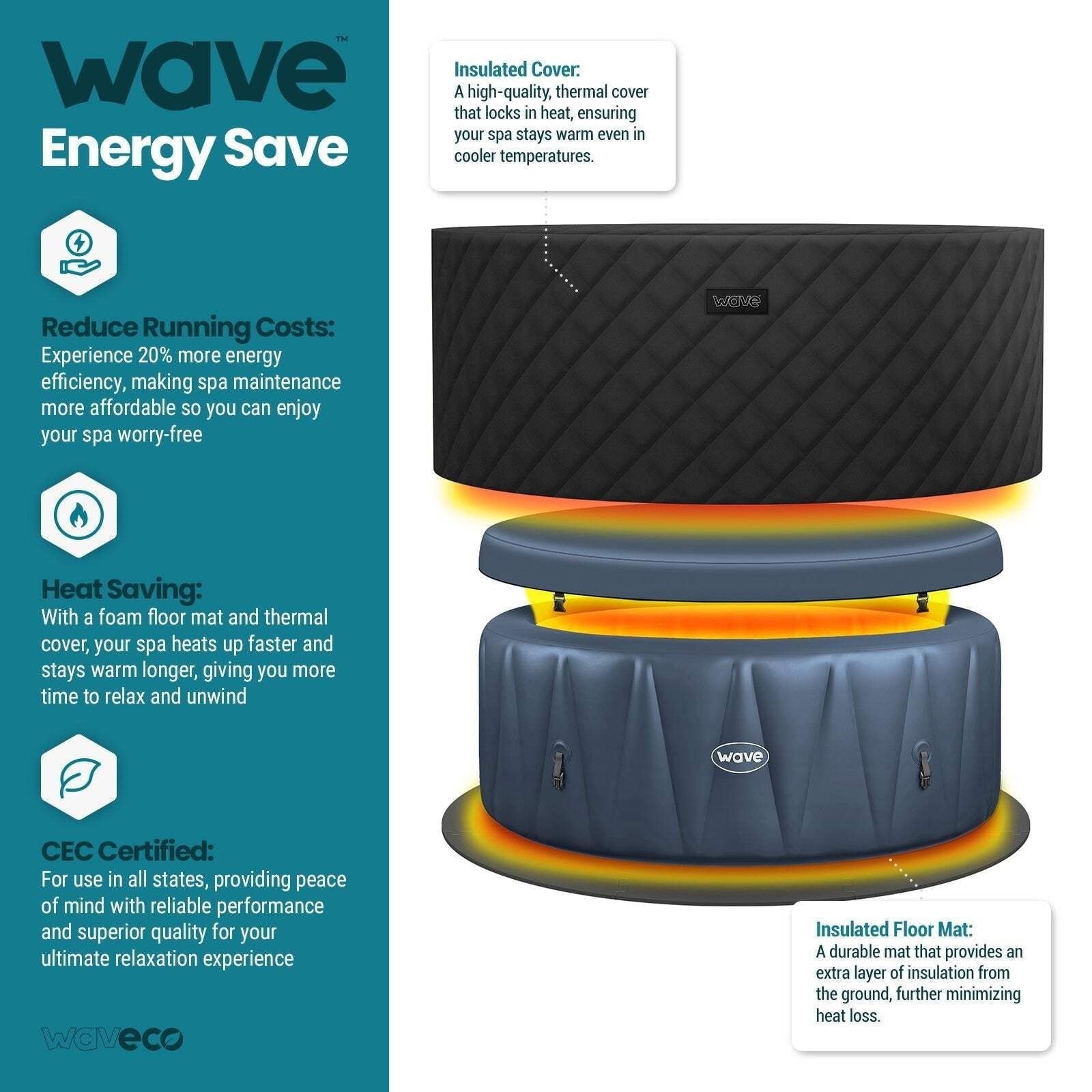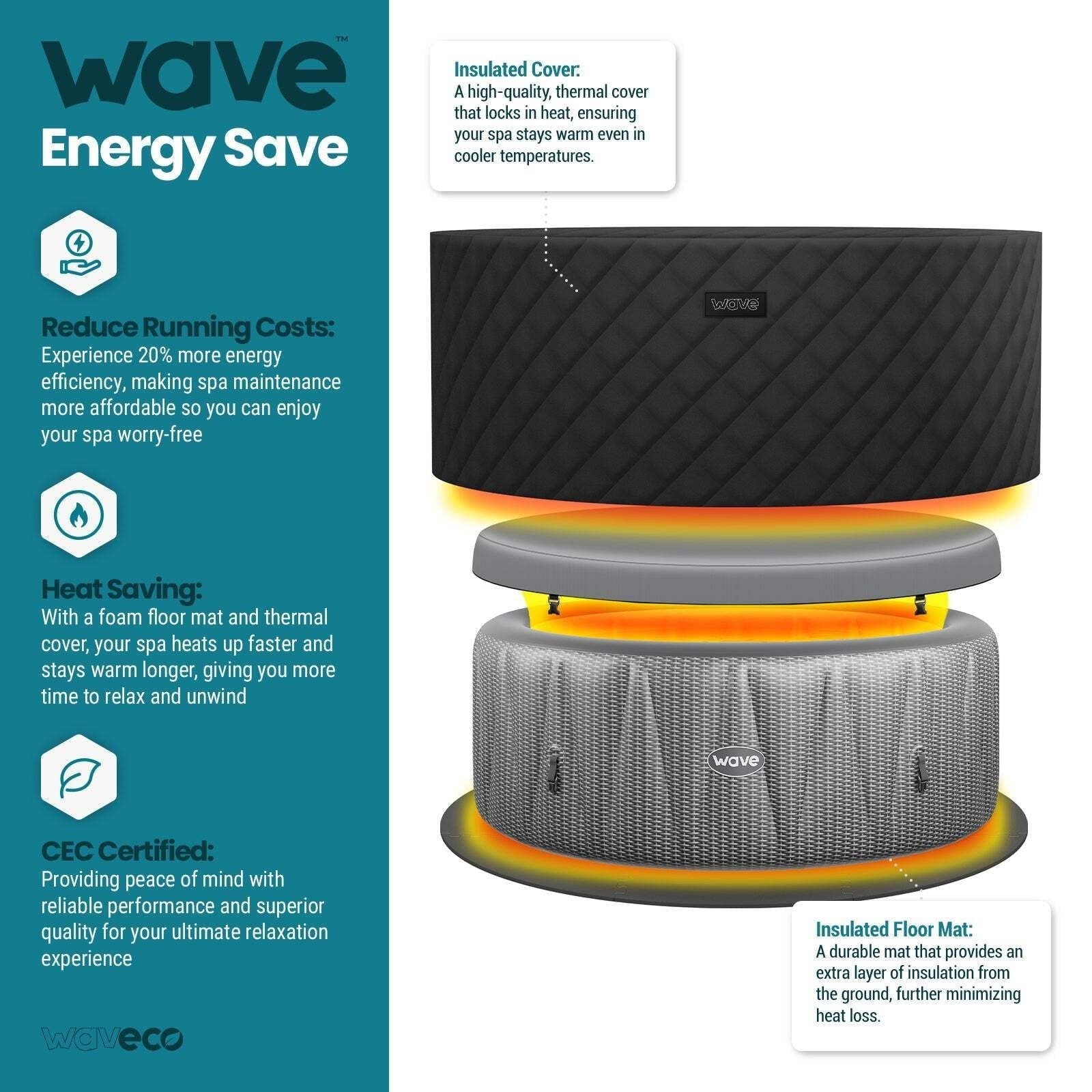 - Wave Atlantic | 4-Person Inflatable Hot Tub | Integrated Heater | Dark Gray