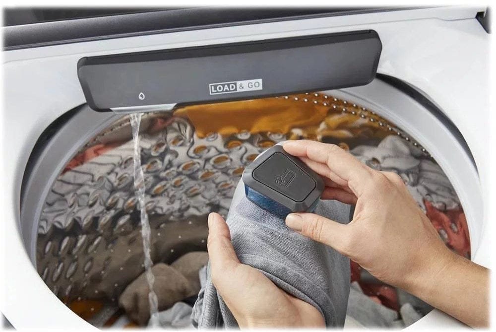 Skip adding detergent to every load with the Load & Go dispenser in this top load washing machine, and pretreat in one spot with a built-in dual temperature faucet and pretreat brush. Let the smart capable washer guide you to the right cycle combinations, or customize your own, and manage laundry from your smartphone to stay connected from anywhere